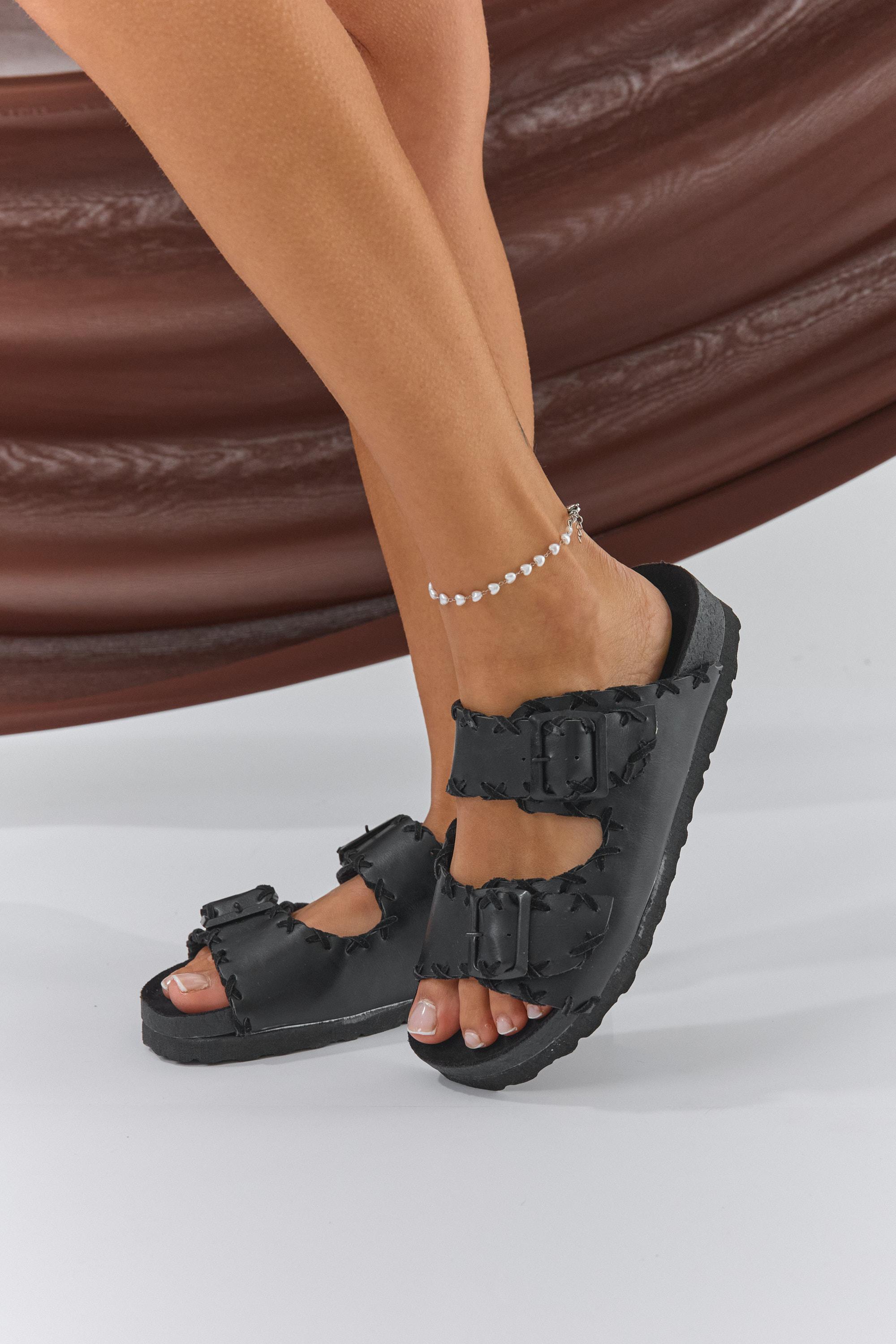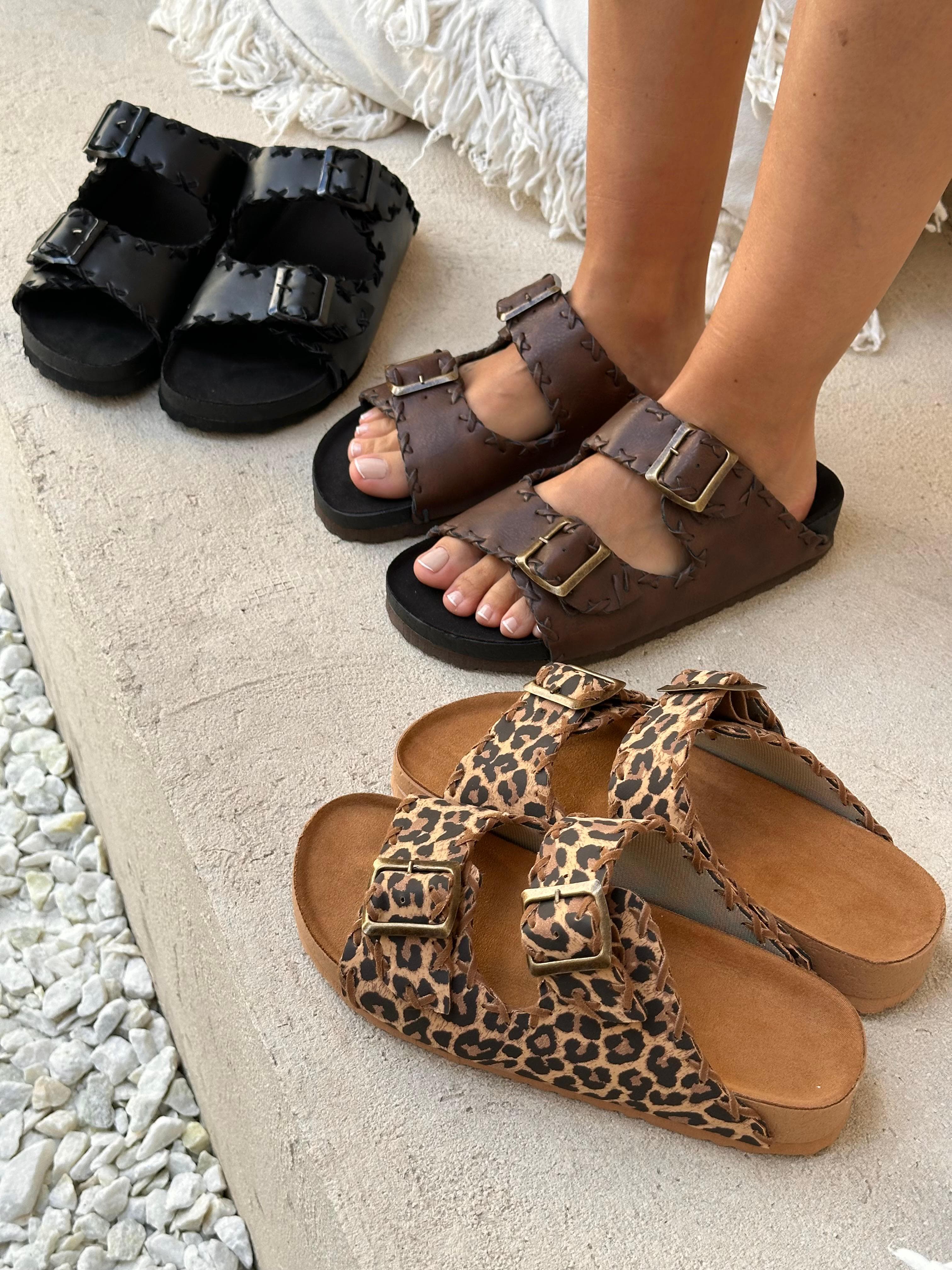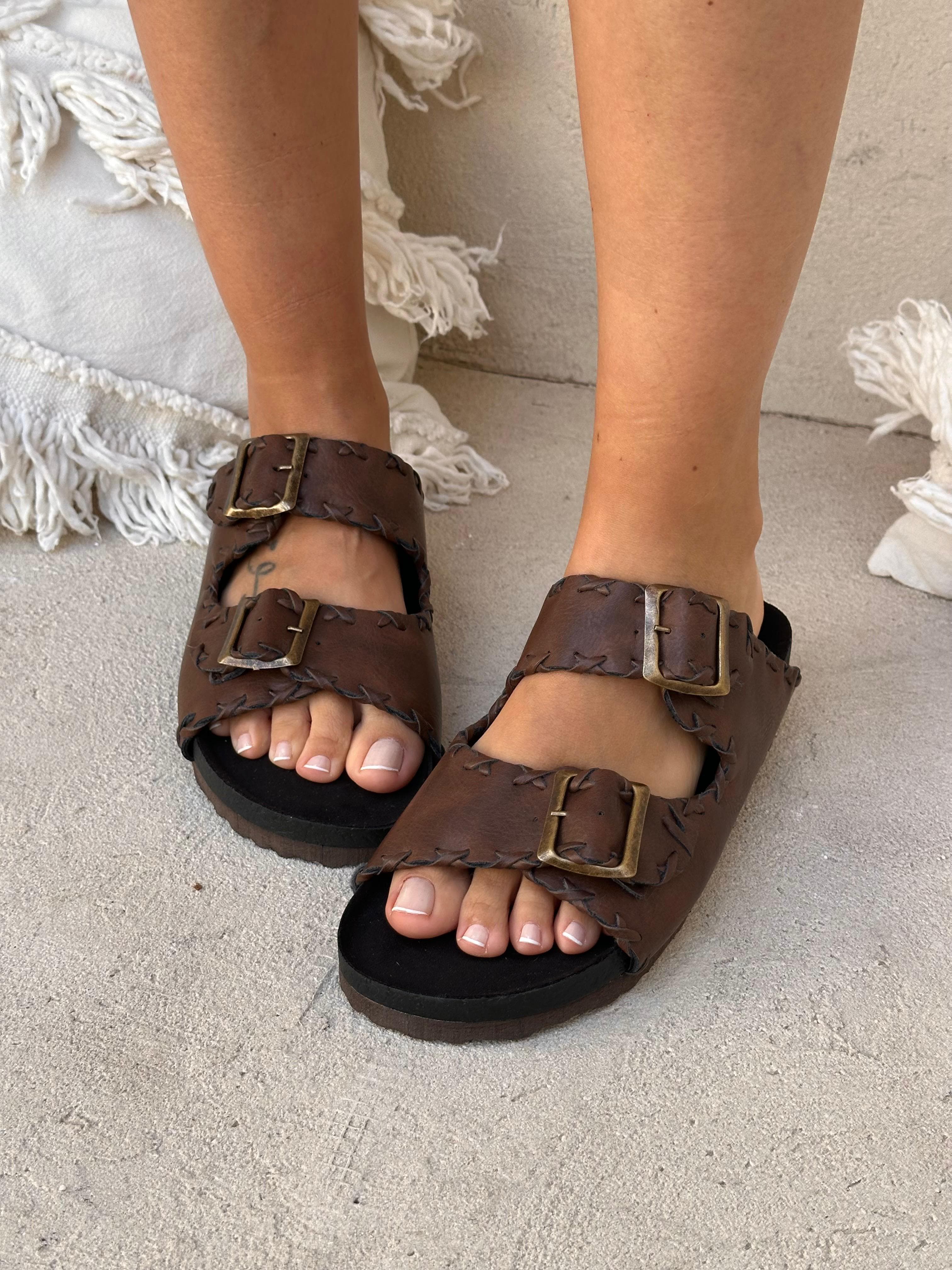 Sandalias con doble tira con hebilla regulable.