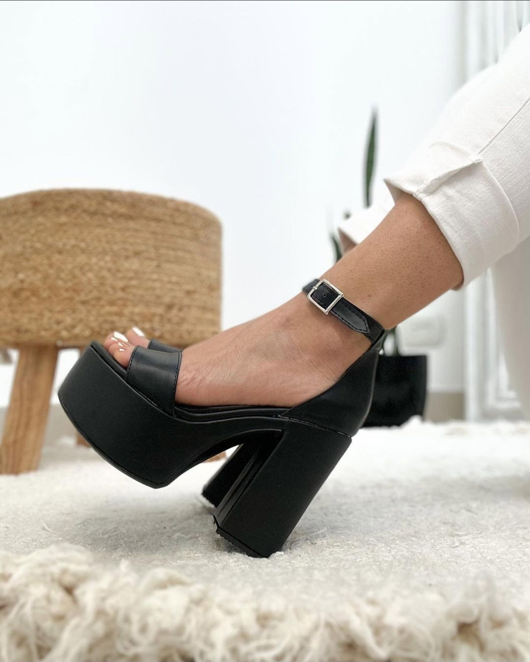 Altura de base/Plataforma: 6 cm de plataforma, 12 cm de taco (Base Pvc)