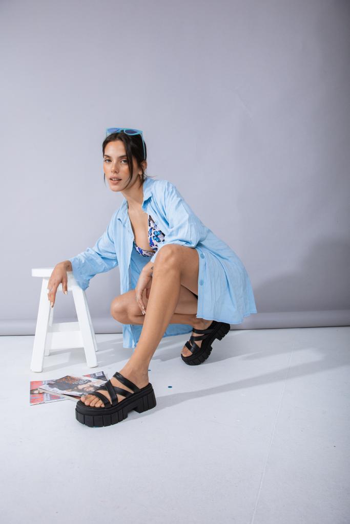 Sandalias con 4 tiras cruzadas, tipo sueco. Cuero ecologico. 100% Cruelty Free
