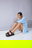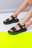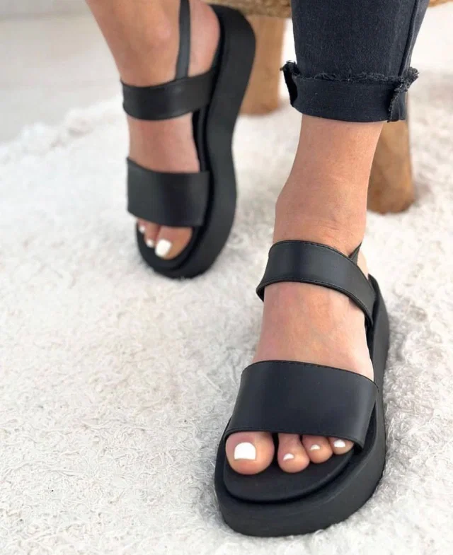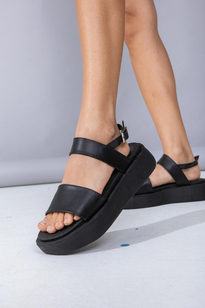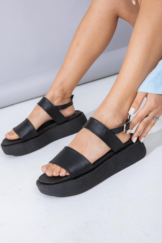 Sandalias con una franja, con pulsera y hebilla regulable. Cuero ecologico. 100% Cruelty Free
