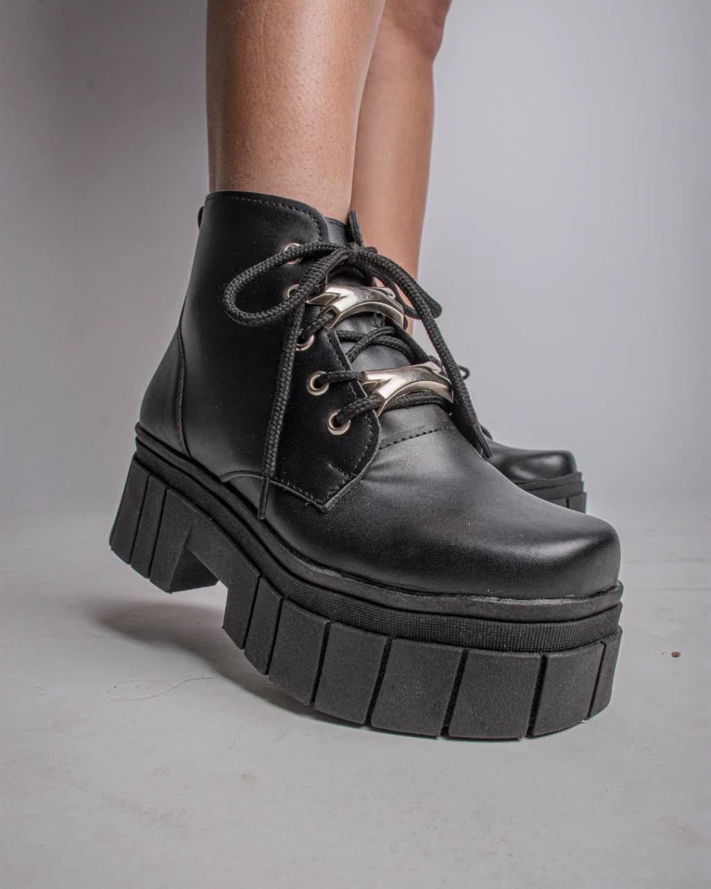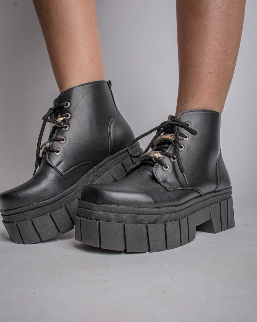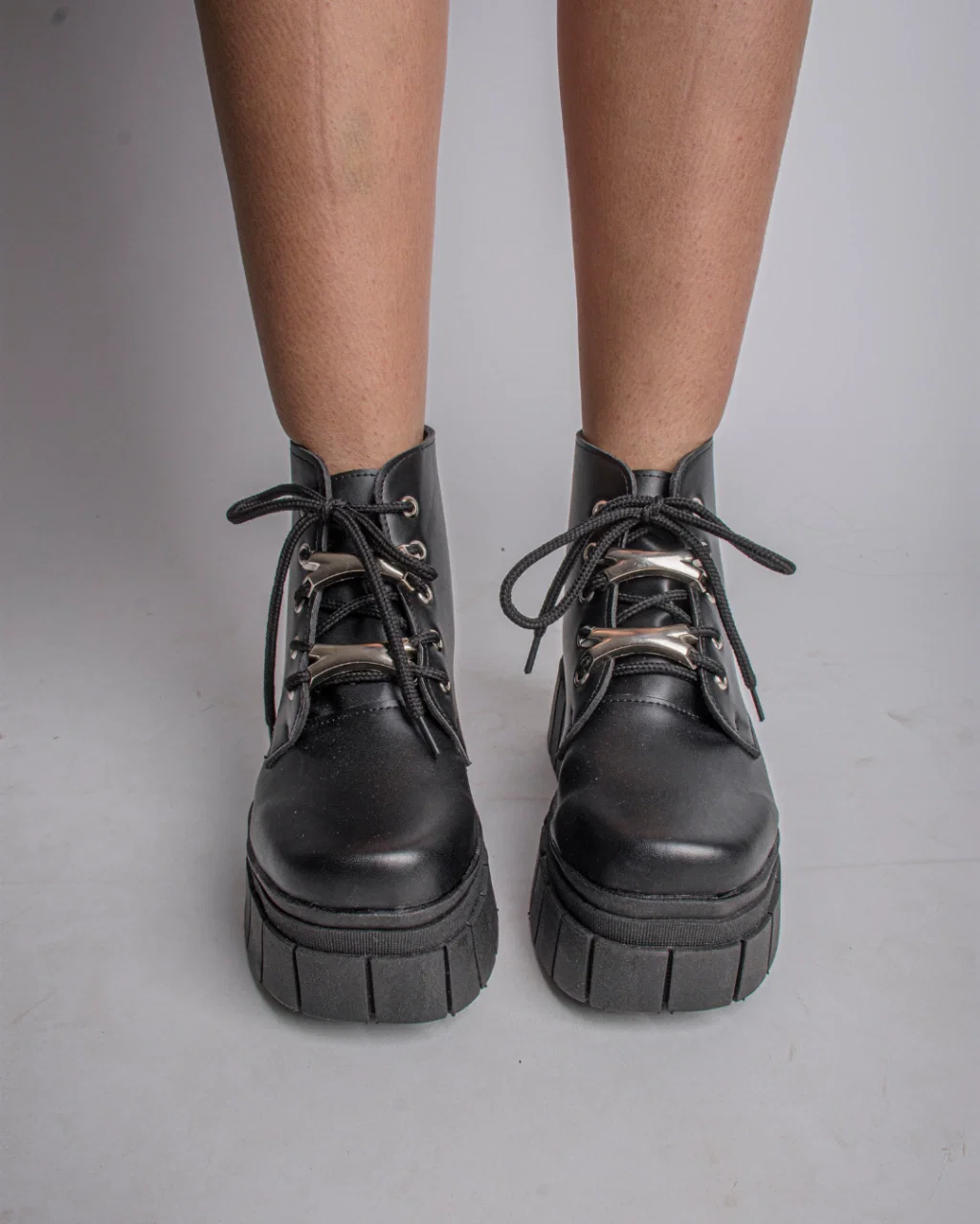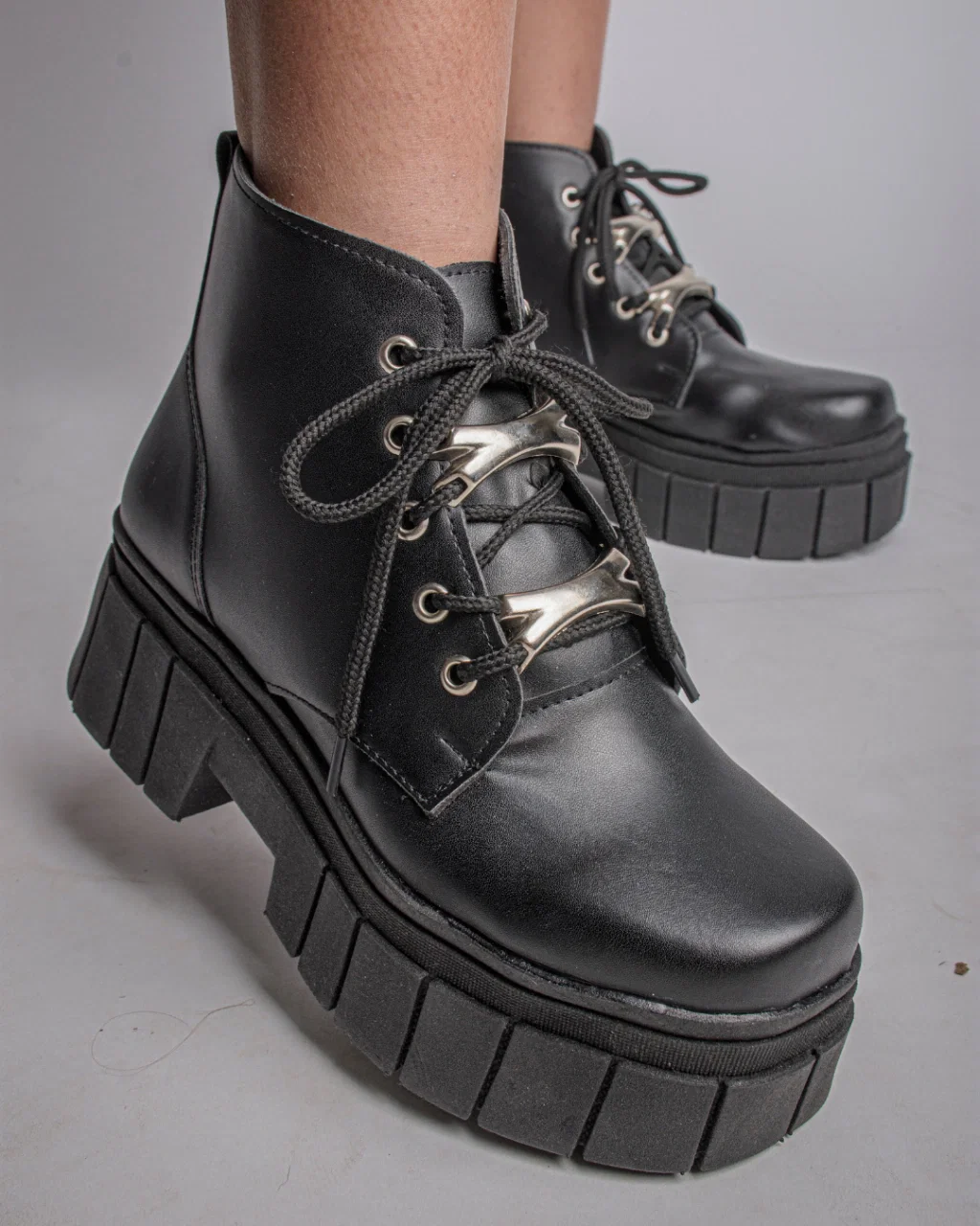 Borcegos caña corta, acordonados con detalles de metal (desmontables).